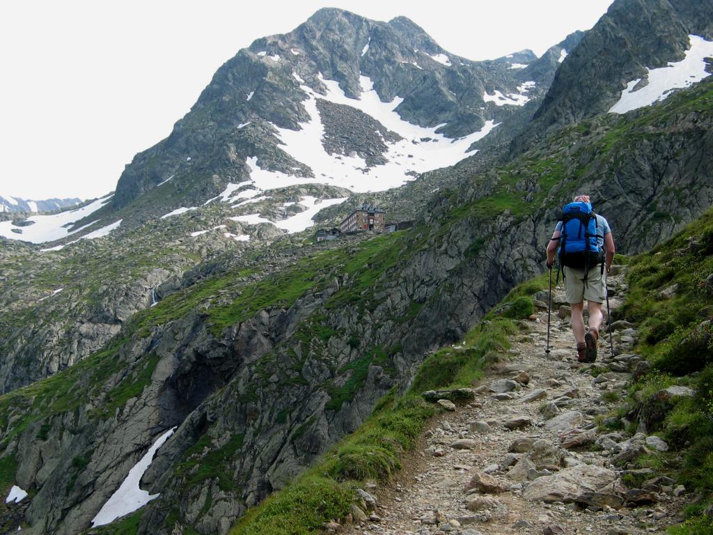 Am nächsten Morgen waren die Berge in Wolken gehüllt. Wir in unsere Bademäntel, uns gegenseitig mit Champagner zuprostend ... na ja, gut: Träumend, aber nicht traumatisiert entschieden wir uns also für die Variante “Mairspitze” als Übergang zur Sulzenauhütte.