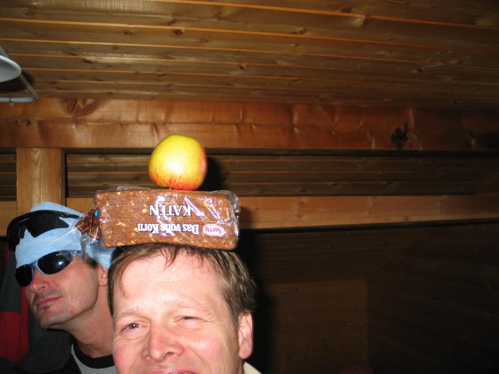 Wie sich am späteren Abend herausstellte, verbarg die Hüttenküche bis dato ein süßes Dessert, welches so überhaupt nicht auf der Speisekarte verzeichnet ward ! Ein in unschuldiges Orange getauchtes, von Rollistone als Kindfrau tituliertes WWW (= wahnsinnig weibliches Wesen) ! Weshalb Sparmaßnahmen in Österreich aber aus Frau und Kind gleich Kindfrauen machen, erschloss sich uns nicht!! Die legendäre Schüchternheit von Helmiman verhinderte jedoch eine Annäherung an das Dessert („An diese Frau trau ich mich nur im Morgentau”; es war aber bereits nach 21 h !), das zu allem Übel am nächsten Morgen zum Abstieg ins Tal aufbrach, uneinholbar für alle Liebhaber der süßen Küche.