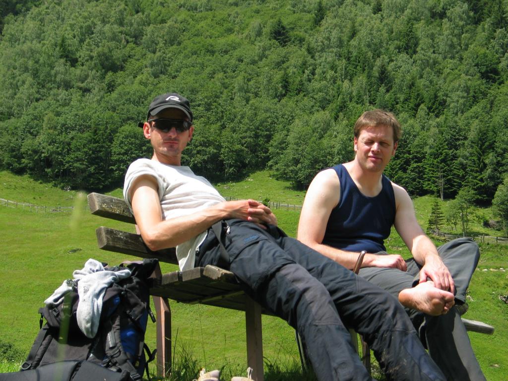 Vor Ranalt machten wir dann unseren Mittagsstopp inkl. Essen, Trinken, Sonnen (wir & Klamotten) und Schlafen. Der überdimensionierte Twingo-Kleiderständer wurde von einigen passierenden Wanderern und Mountainbikefahrern ob seiner Pfiffigkeit neidisch bewundert.