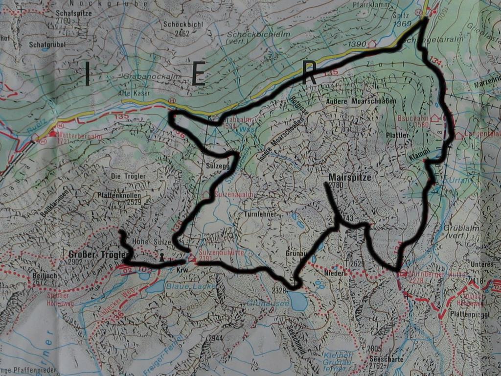 Parkplatz Nürnberger Hütte - Nürnberger Hütte - Mairspitze - Sulzenauhütte - Großer Trögler - Sulzenauhütte - Parkplatz Nürnberger Hütte